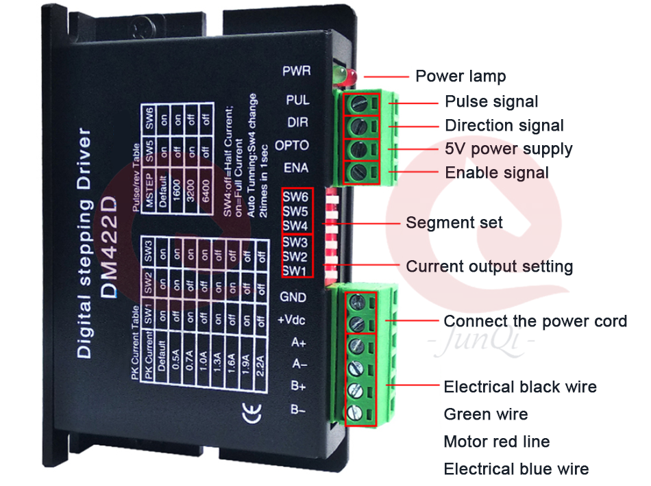 PUL ist der Richtimpulsinput; DIR ist der Schrittmotorrichtungsinput; Ist die Stromversorgung für Signalhafen + 5V OPTO; ENA ist der Bewegungsfreie Input. |