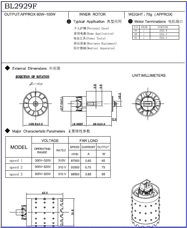 | Typische Anwendung | Ventilatormotor, elektrischer Ventilator, blattloser Ventilator, blattloser Ventilator |
